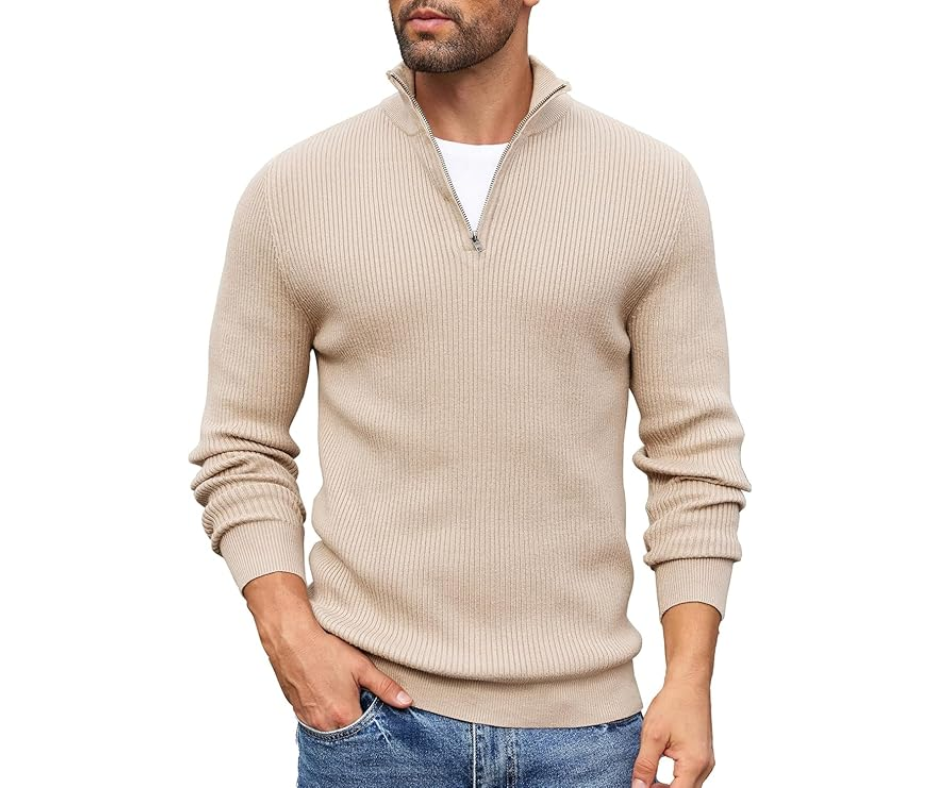 DENIMHOLIC Men High Neck Zipper Full Sleeve Cotton Knitted Winter Sweater